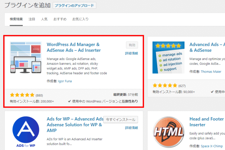 ここでは、全記事に自動的に共通のバナー広告や定型文を挿入できるプラグイン「Ad Inserter」と「Advanced Ads」の2つを紹介します。
