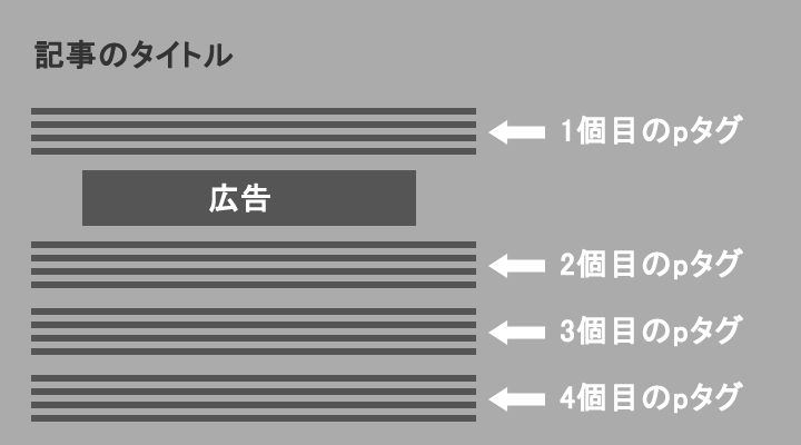 これらの設定は、「記事中の1つ目のpタグの後に広告を表示する」を表しています。