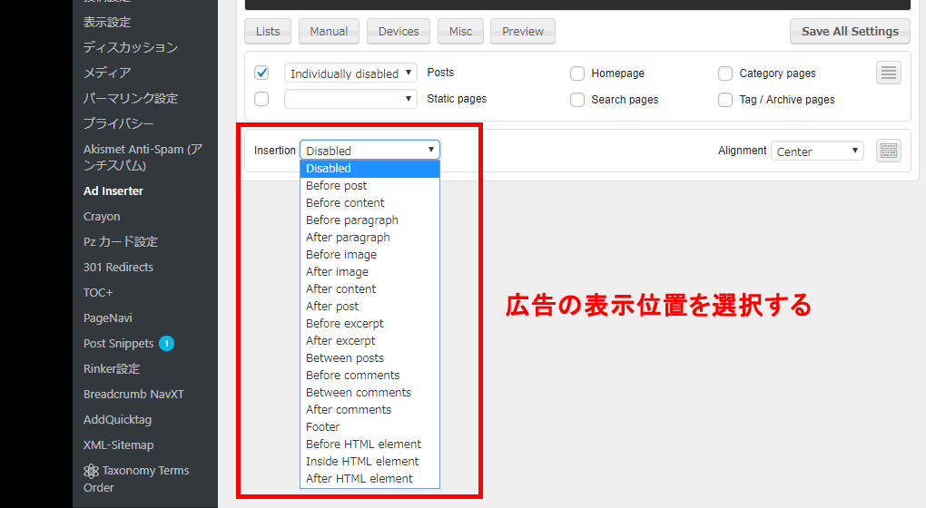 広告や定型文を自動挿入するプラグインその1「Ad Inserter」