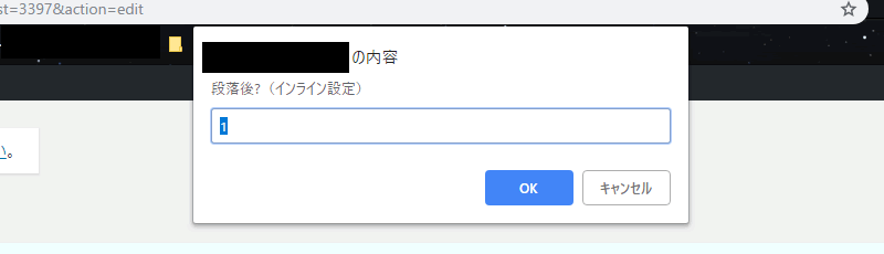 標準では「段落後?」のメッセージに「1」が入力されています。配置のオプションは次に細かく設定するので、ここはそのまま「OK」ボタンをクリックして大丈夫です。