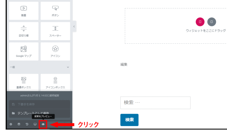 これで保存ができます。保存されたページのプレビューを見るためには、左隣にある「変更をプレビュー」ボタンをクリックします。