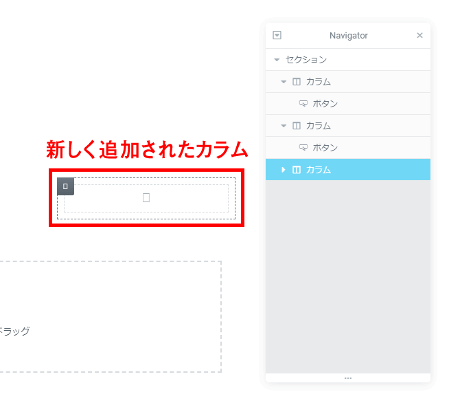 さきほど1つカラムを削除してカラムが2つになったセクションにカラムを追加して、もう一度3つにしてみましょう。