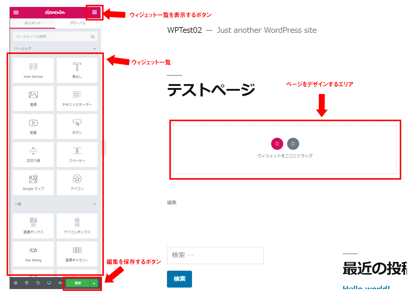 各機能の細かい説明の前に、Elementorを使ったページデザインの大まかな流れから紹介します。
