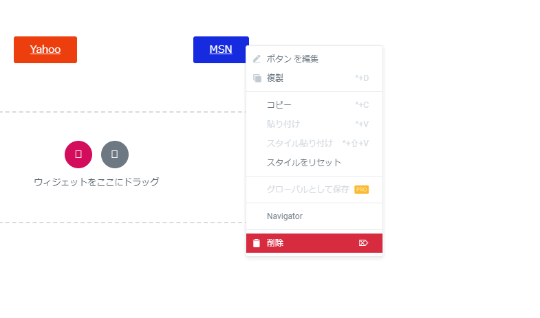ウィジェットを削除するためには、削除したいウィジェットの上でマウスを右クリックして「削除」ボタンをクリックします。