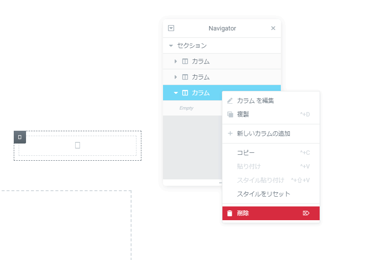 ウィジェットを削除しても、ウィジェットが配置されていたカラムは削除されません。