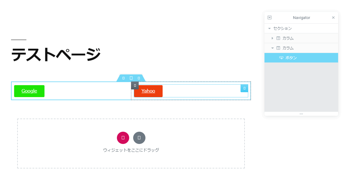 同じ要領で、残りの2つのカラムにもボタンを配置してみましょう。