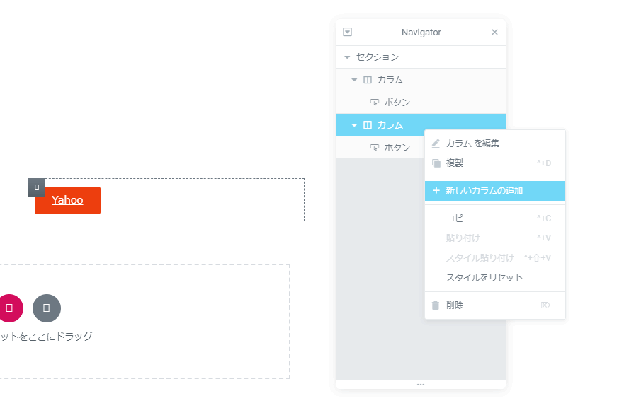 一番左のカラムにボタンが追加されます。