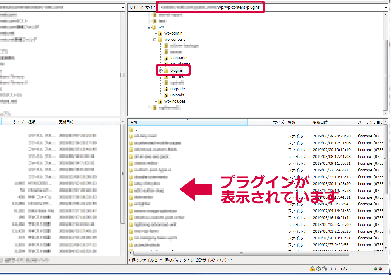 2. プラグインのディレクトリを見つける(プラグインのディレクトリは「/wp-content/plugins/」です)