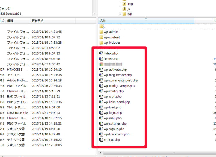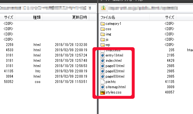 サーバーに直接ファイルをアップロード(ダウンロード)するときに使うFTPソフト(ファイル転送ソフト)で見てみると、その様子がわかります。